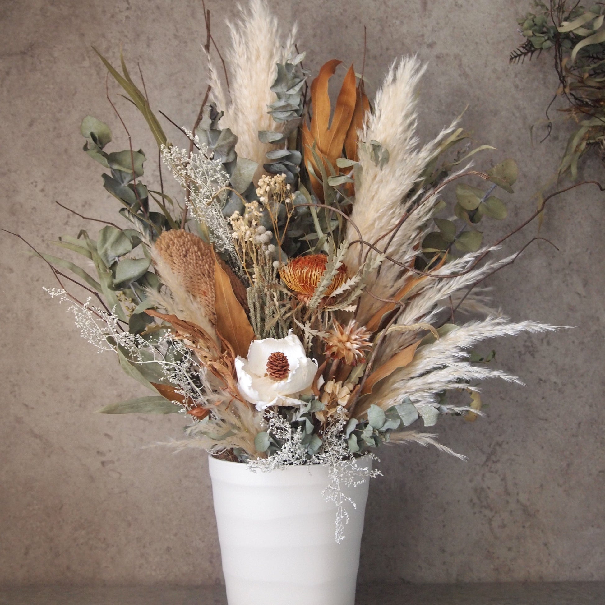 可能な限り同じ花材を使用して制作いたしますが、季節や入荷状況により花材が変更となる場合がございます。